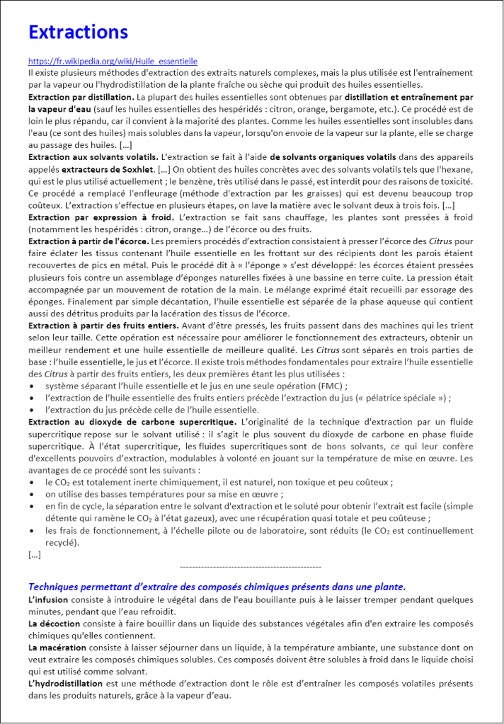 A propos des huiles essentielles on se propose d’explorer les procédés d’extraction.
