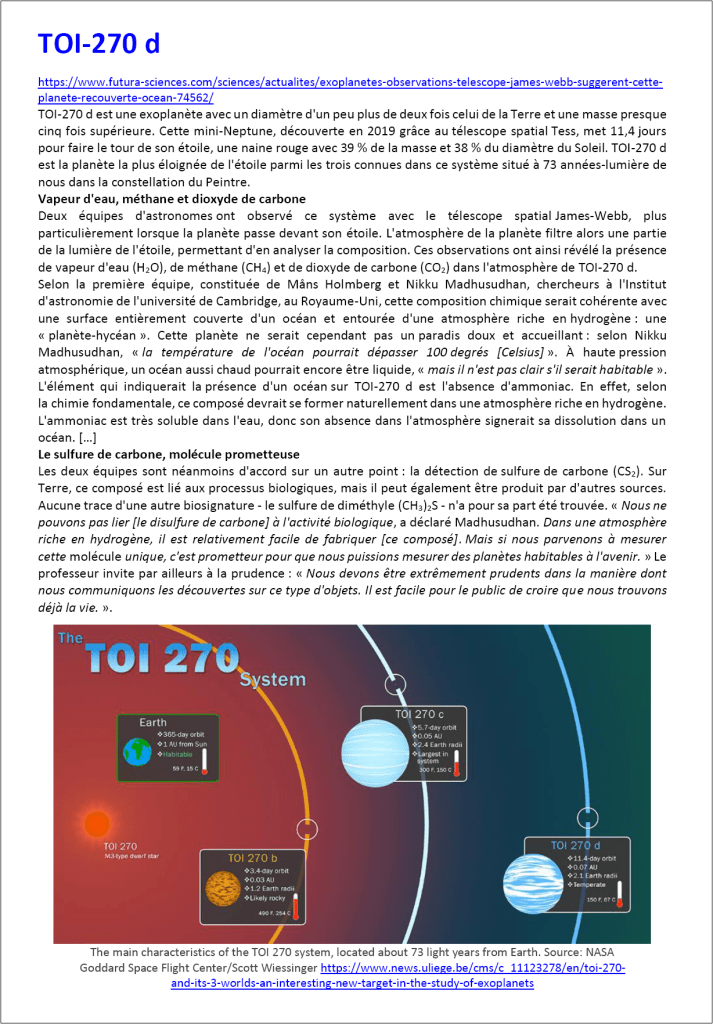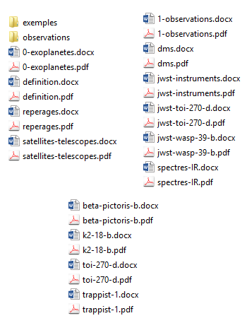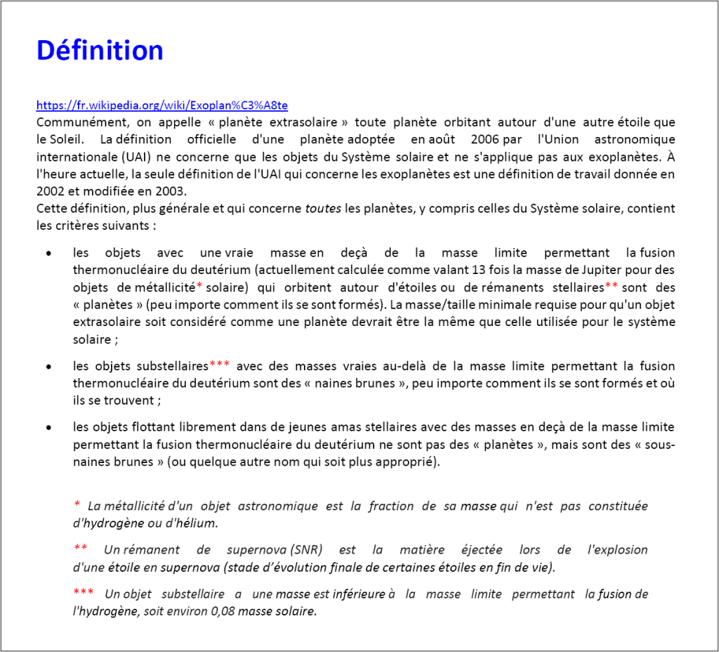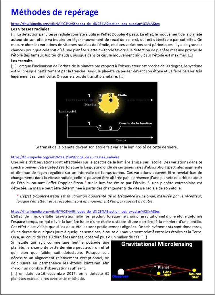 Tous les documents indiqués sont téléchargeables à l’adresse DOCS (dossier exoplanetes).