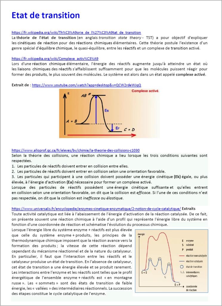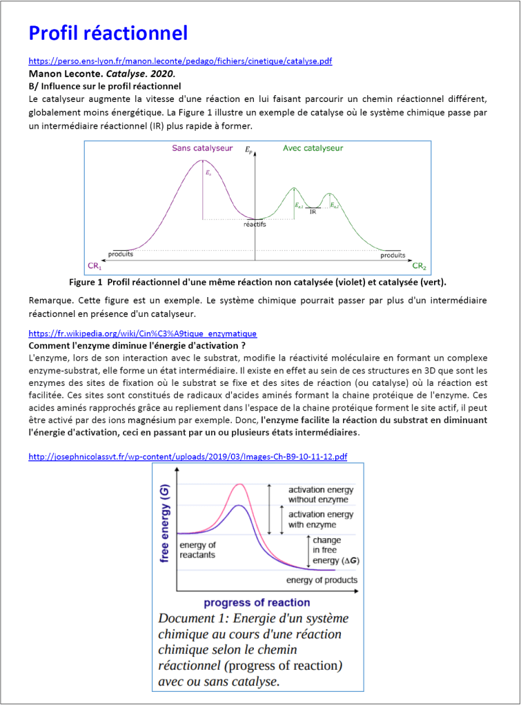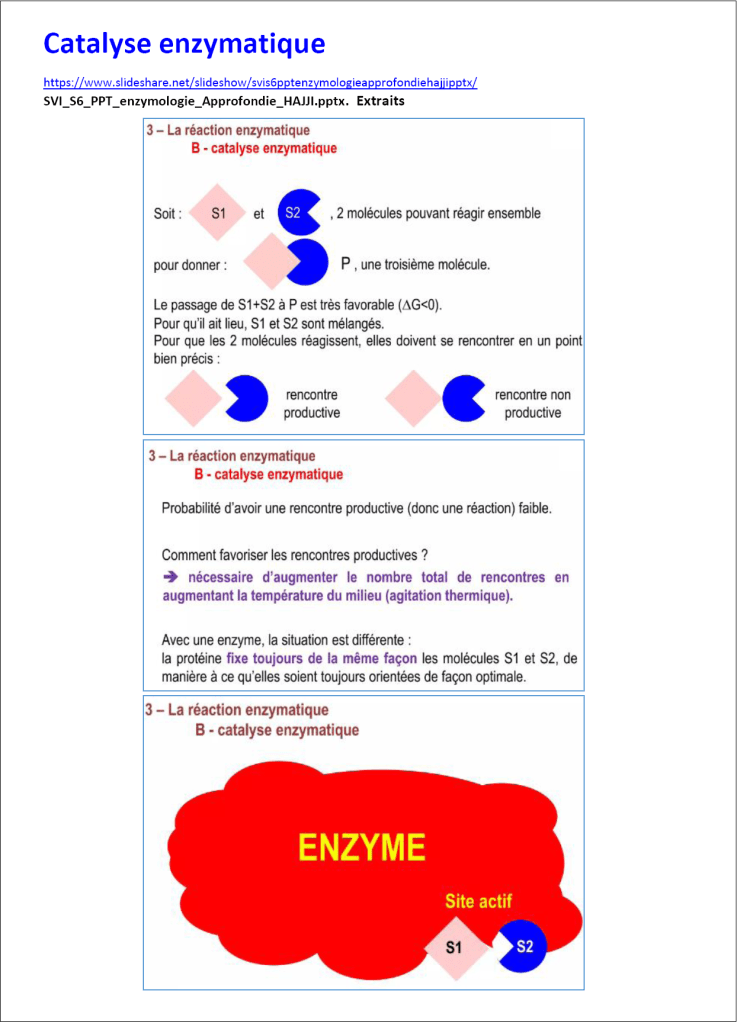 Tous les documents indiqués sont téléchargeables à l’adresse DOCS (dossier enzyme).