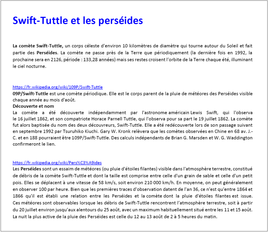 Tous les documents indiqués sont téléchargeables à l’adresse DOCS (dossier astro).