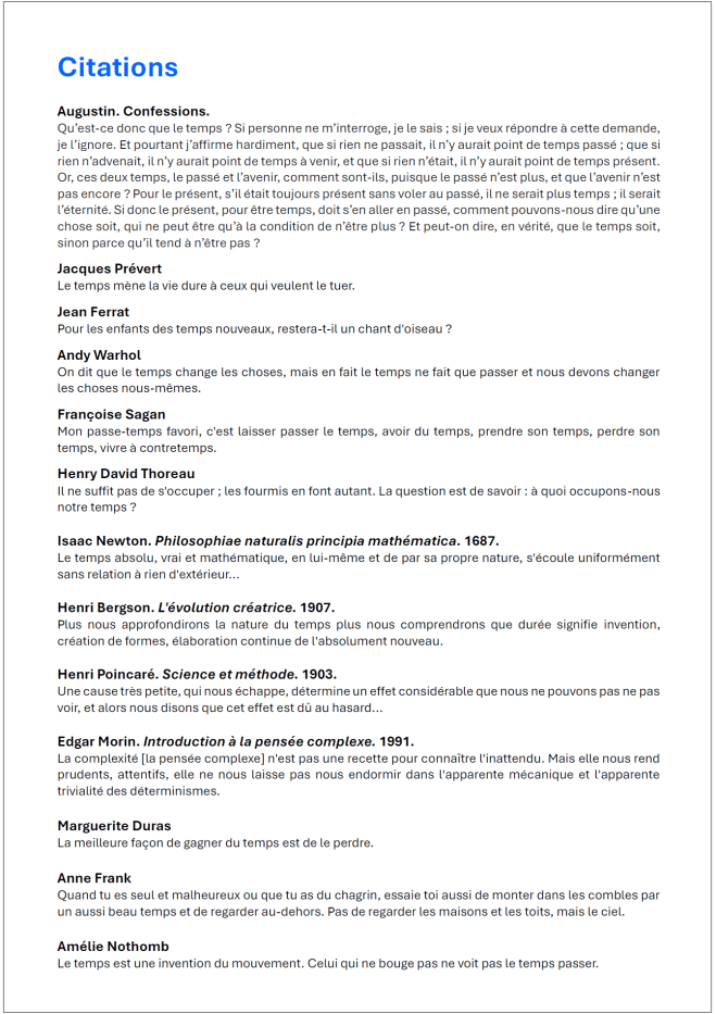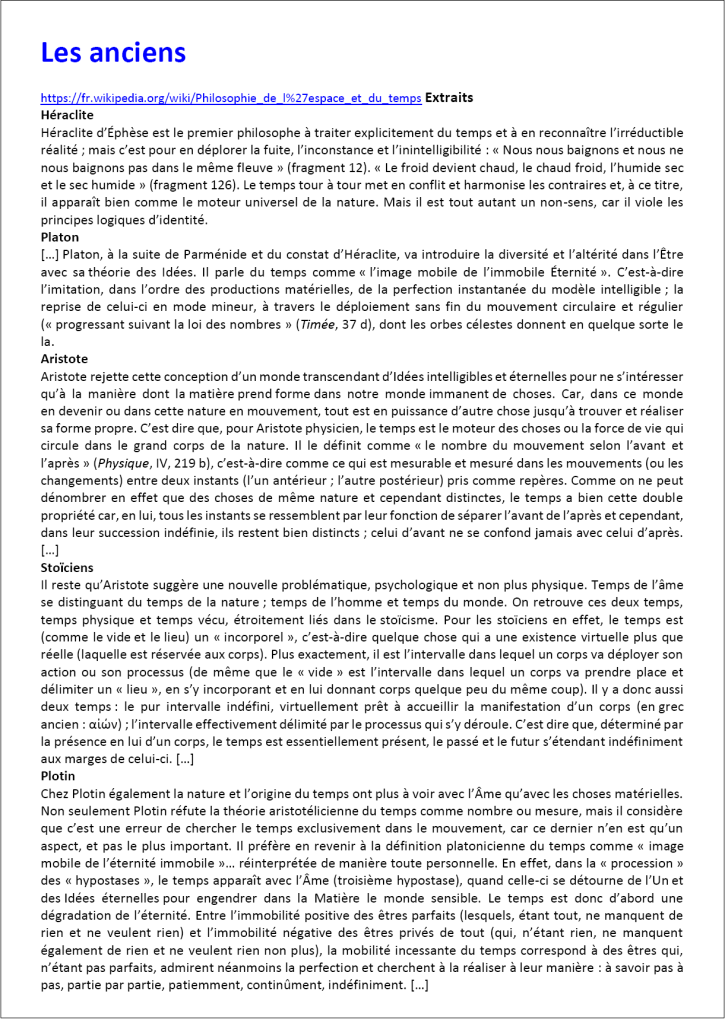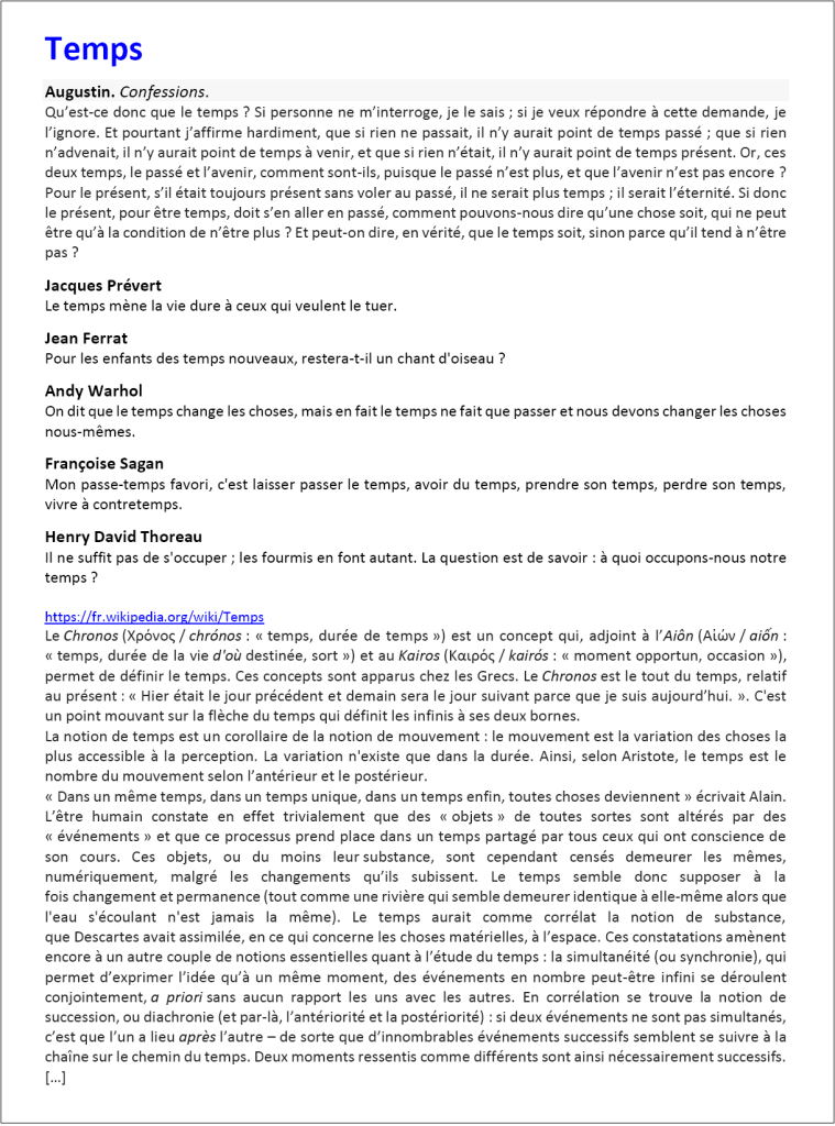 Tous les documents indiqués sont téléchargeables à l’adresse DOCS (dossier temps).