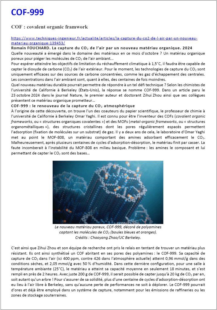 Petite collection documentaire pouvant donner lieu à exploitation et interrogations à propos du COF-999, capteur de CO2.