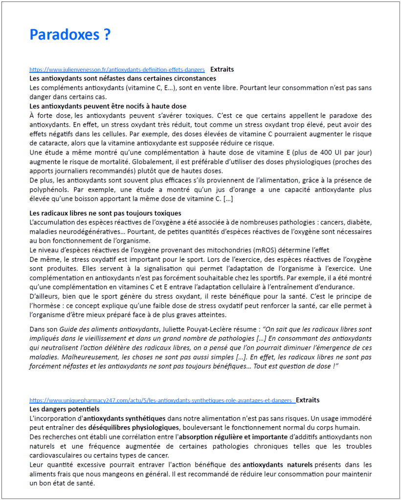 Tous les documents indiqués sont téléchargeables à l’adresse DOCS (dossier antioxydants).
