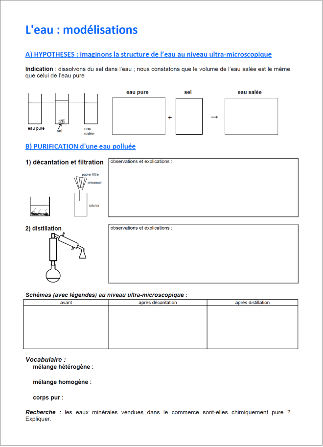 A propos de l’eau, pour des travaux expérimentaux et d’élaboration d’hypothèses, niveau élémentaire :