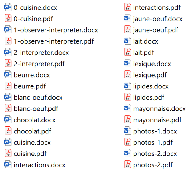 Tous les documents indiqués sont téléchargeables à l’adresse DOCS (dossier cuisine).