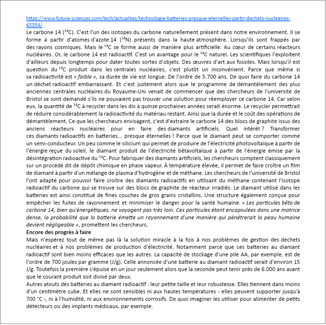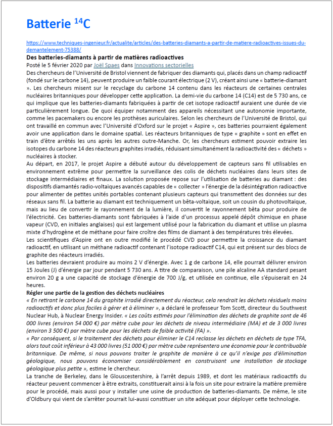 Tous les documents indiqués sont téléchargeables à l’adresse DOCS (dossier betavoltaique).