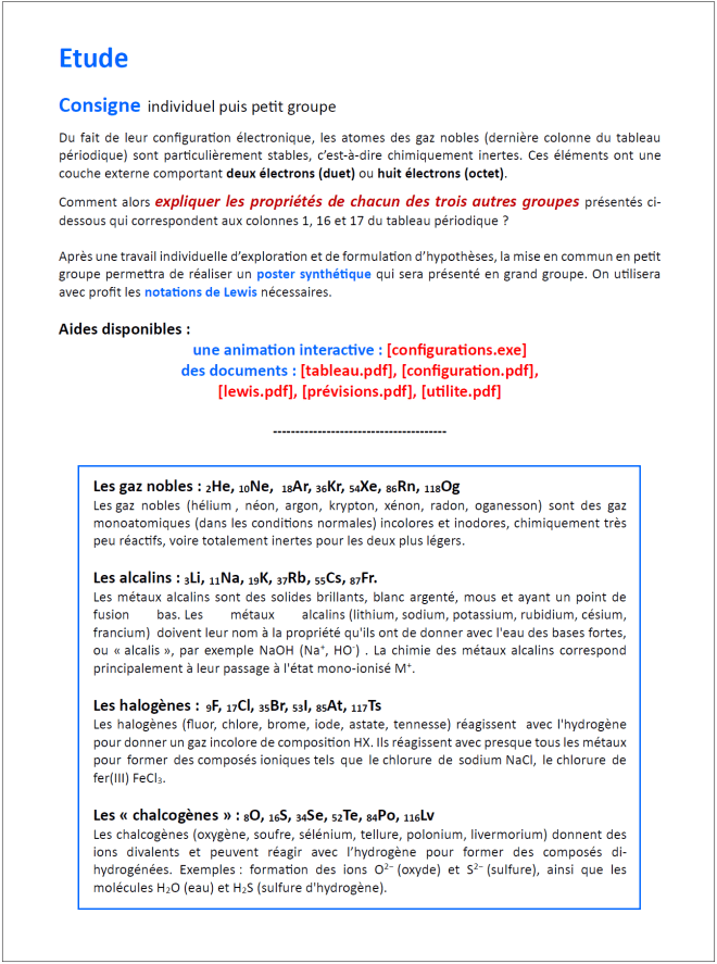 Pour introduire le modèle de Lewis : une activité d’investigation avec exploitation de documents.