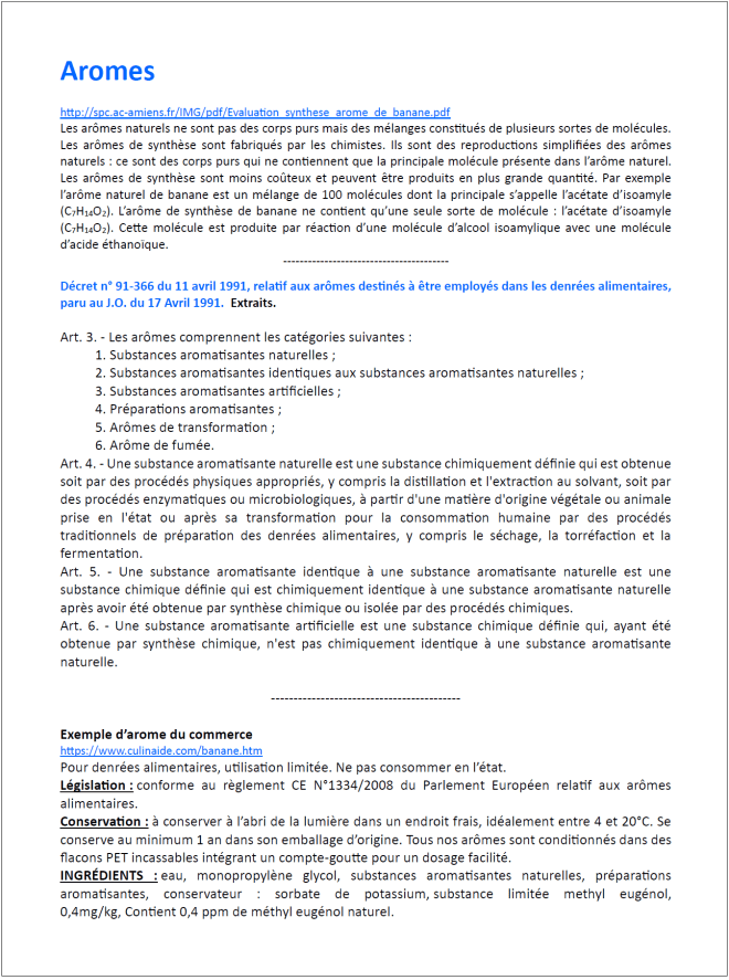 On pourra consulter également : Evolution (1) – Ester ; Extraction ; Alimentation et arômes ; Synthèses organiques