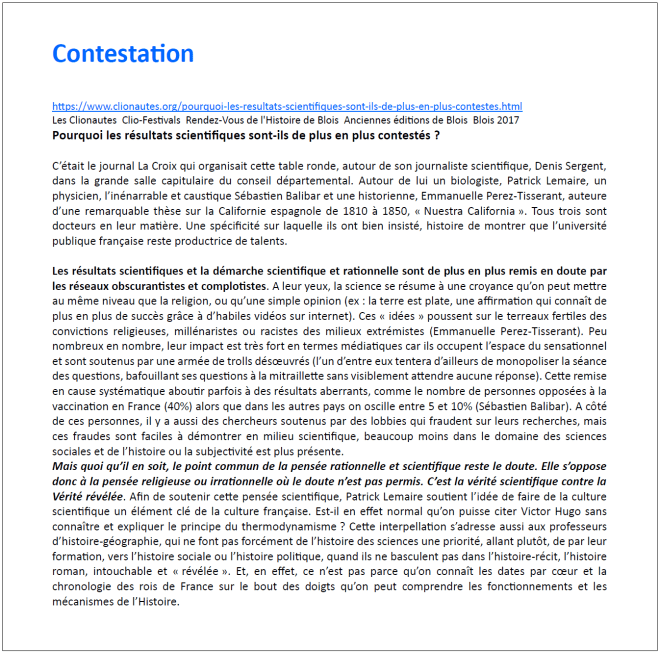 On pourra également consulter : Le goût du vrai Post-vérité Vérités de sciences
