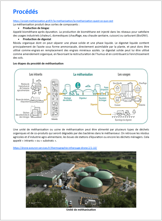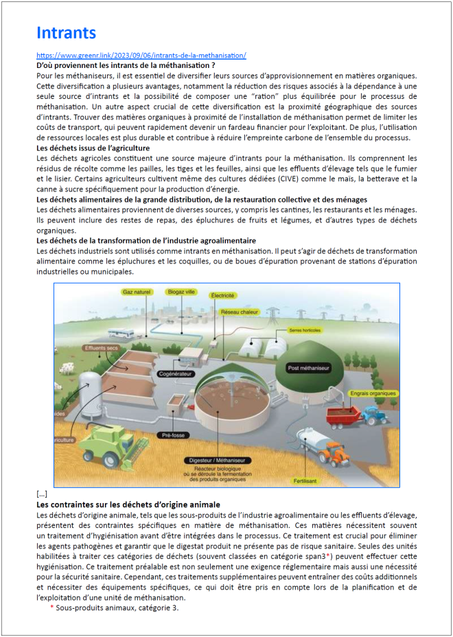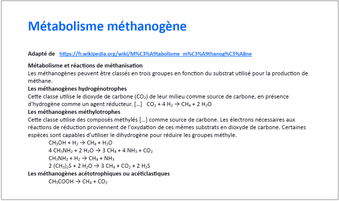 Tous les documents indiqués sont téléchargeables à l’adresse DOCS (dossier methanisation).