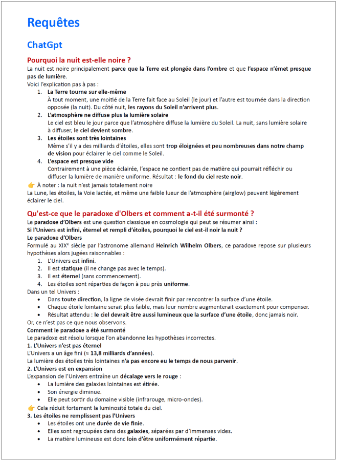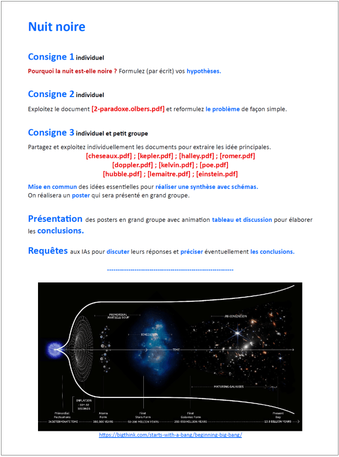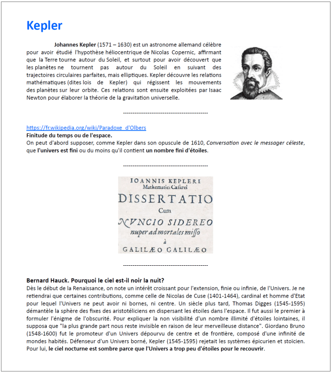 Pourquoi la nuit est-elle noire ? Un travail d’investigation à partir du paradoxe d’Olbers.