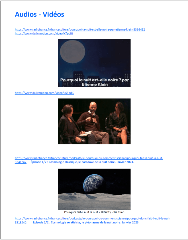 Tous les documents indiqués sont téléchargeables à l’adresse DOCS (dossier nuit-noire)