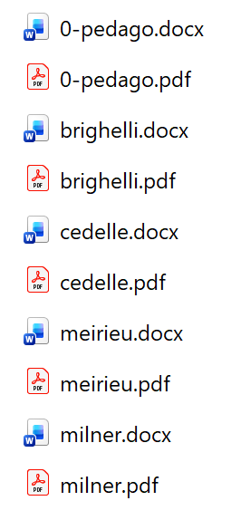 Tous les documents indiqués sont téléchargeables à l’adresse DOCS (dossier pedago).