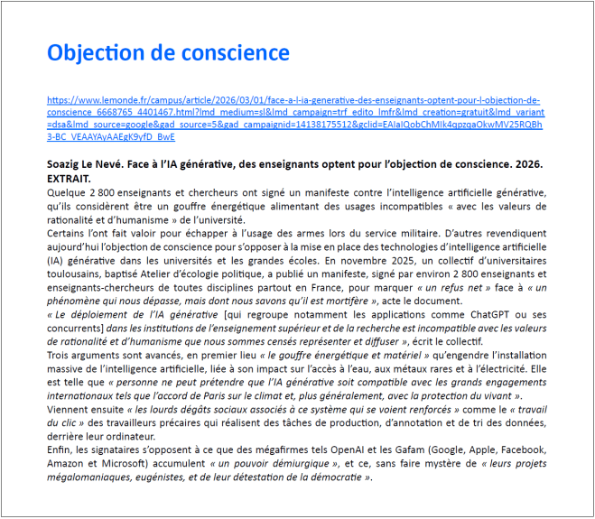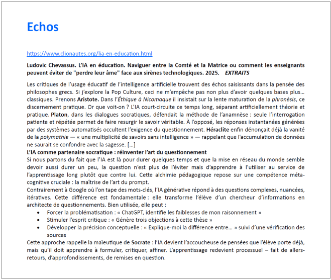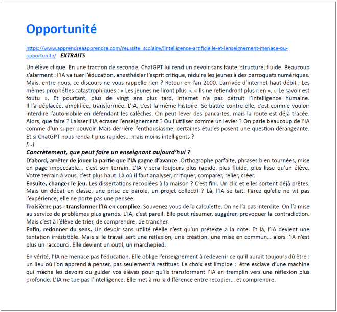 Bien sûr cette publication, qui « a pour objectif d’apporter des réponses claires aux interrogations légitimes de l’ensemble de la communauté éducative et des agents sur l’usage de l’IA en éducation », ne peut pas évacuer les questionnements, les discussions, les travaux d’élaboration, les expériences et leurs analyses critiques.
