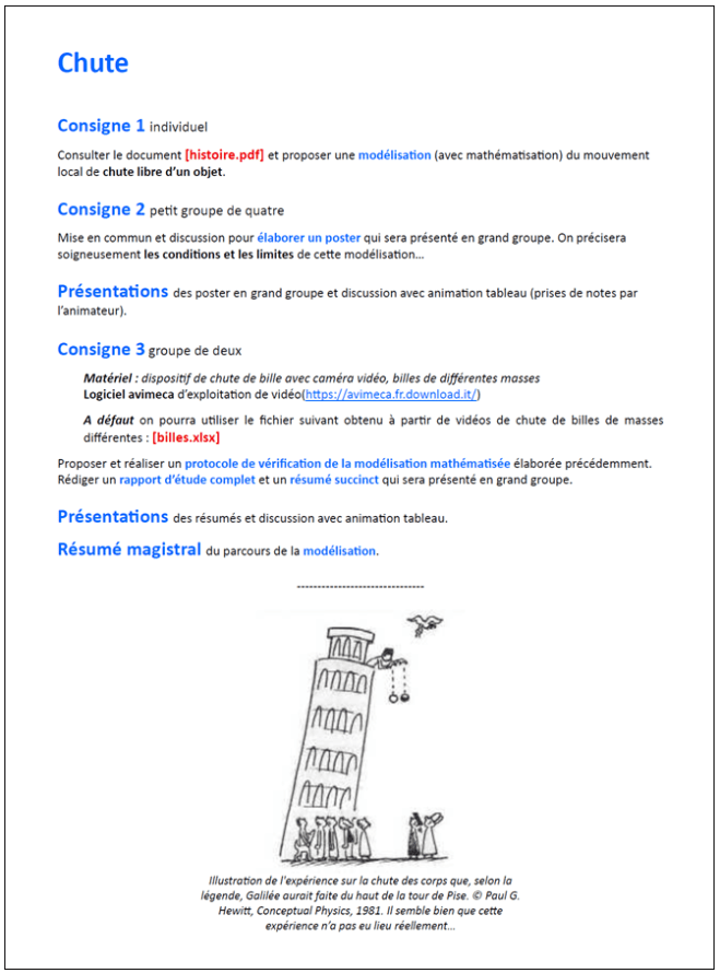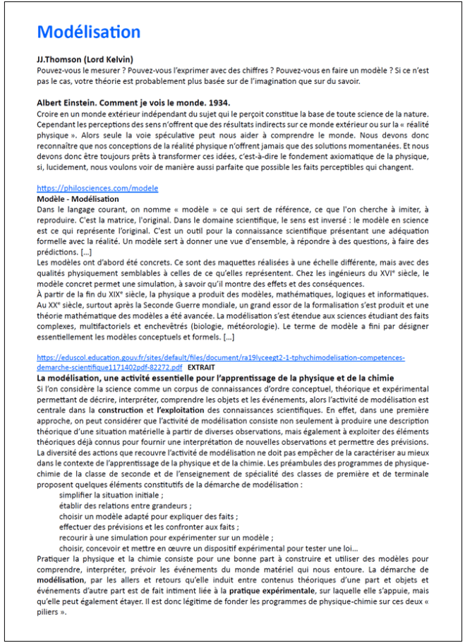 La modélisation est considérée comme « une activité essentielle pour l’apprentissage de la physique et de la chimie ». Voir le document :