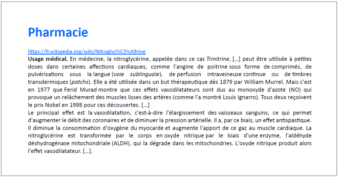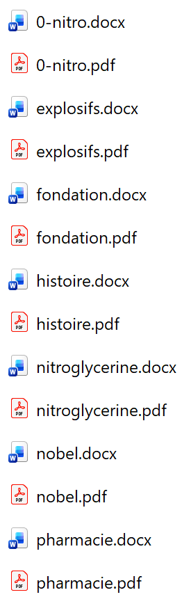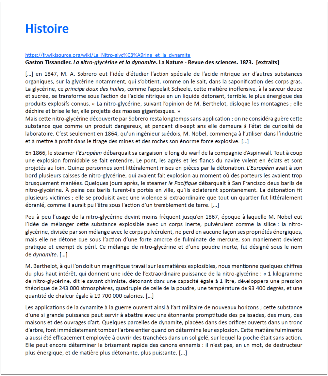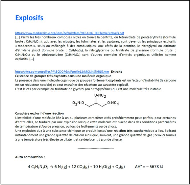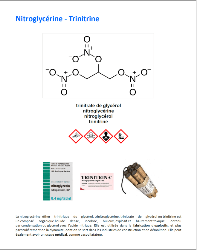 Tous les documents indiqués sont téléchargeables à l’adresse DOCS (dossier nitroglycerine).