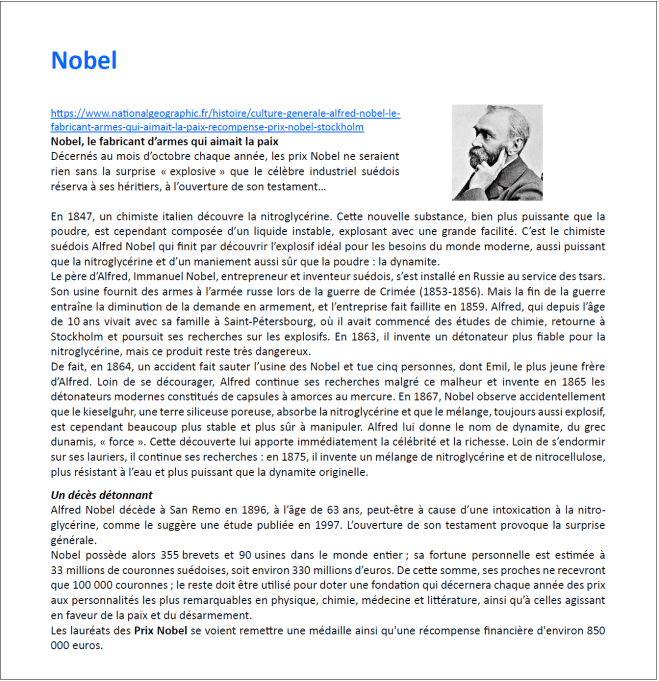 Histoire d’Alfred Nobel et de la nitroglycérine : petite collection documentaire.