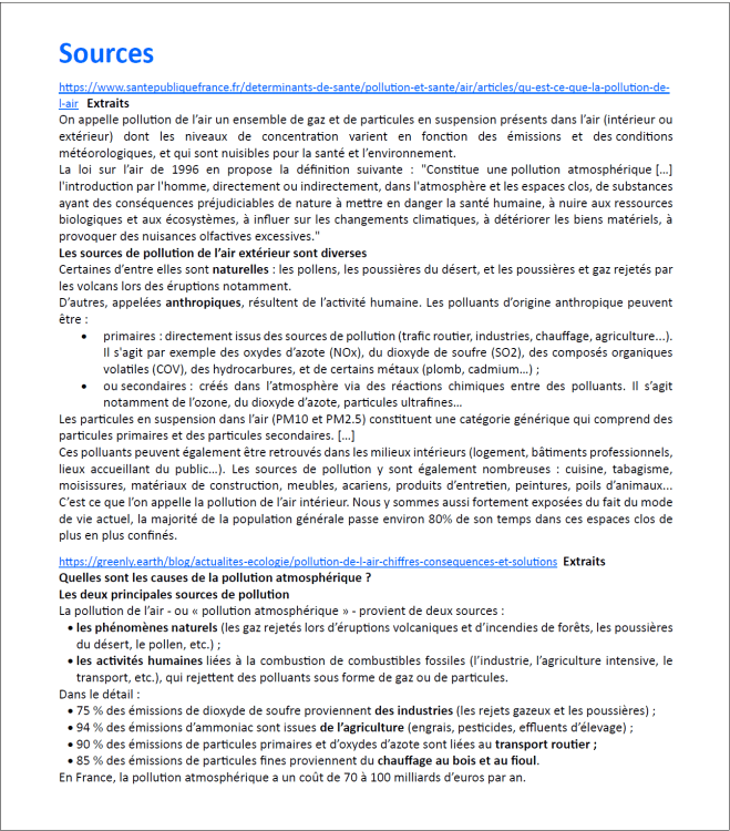 Une investigation à base documentaire pour expliquer le bleu du ciel. Après ce travail de construction de savoir, on pourra exercer une regard critique sur les réponses des IAs à diverses requêtes… On remarquera dans les exemples ci-joints la limitation des réponses à la diffusion de Rayleigh et la « légèreté » des schémas proposés.