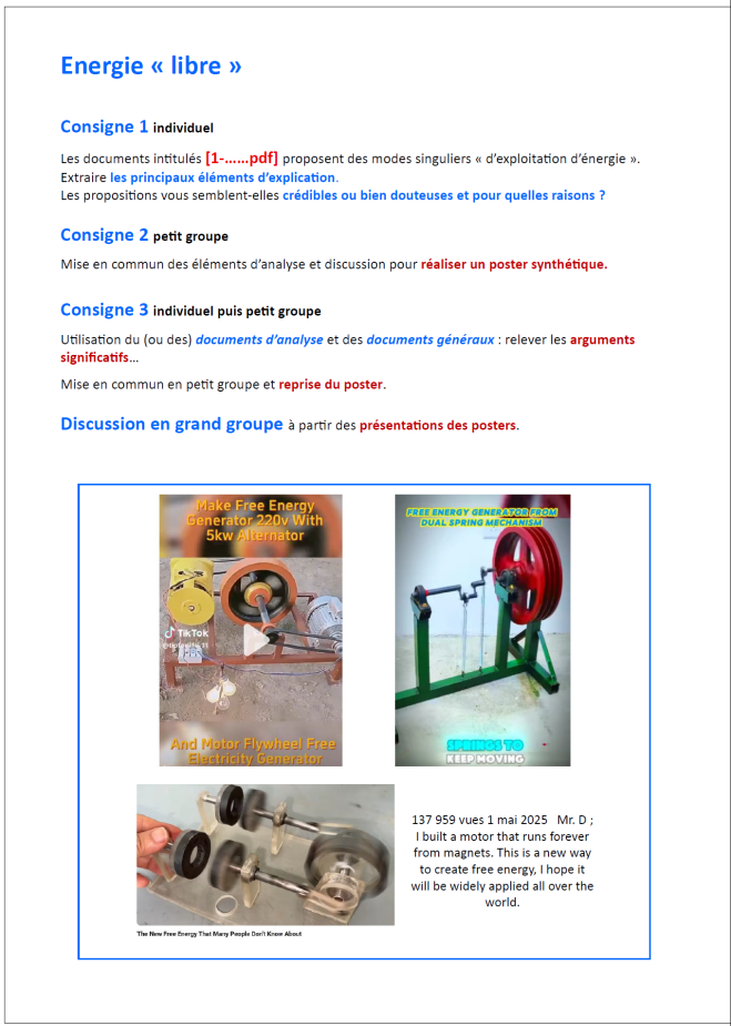 Tous les documents indiqués sont téléchargeables à l’adresse DOCS (dossier energie-libre).