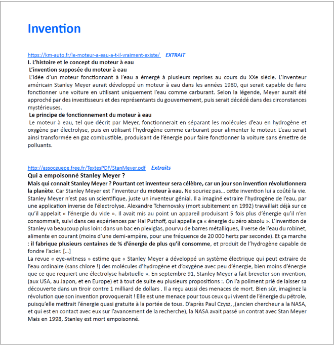 On pourra utiliser au choix un ou plusieurs des exemples ci-dessous. Pour chacun d’eux on a un document numéroté 1- qui présente « l’invention en question ». Les autres documents en font l’analyse… Enfin les documents généraux complètent ces analyses.