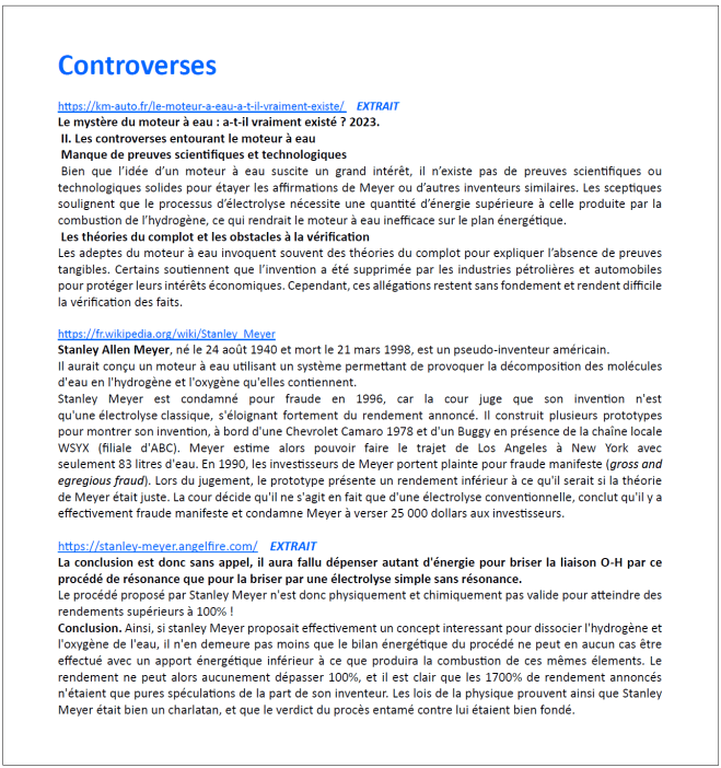 La difficulté de « démonter » ces théories c’est que si l’on se place d’un point de vue scientifique, nous savons que nous n’avons pas tout découvert. Il est donc possible que dans le futur une nouvelle façon de produire de l’énergie émerge. Répondre simplement que « l’énergie libre » est impossible n’est pas suffisant, ni crédible. C’est plutôt au niveau de la théorie du complot et d’éléments très factuels qu’il faut répondre. Ce qui surprend toujours dans la théorie de « l’énergie libre » c’est que les machines présentées (il y a même des plans ou des vidéos) semblent souvent assez simples. Si vraiment un bon bricoleur peut construire une telle machine dans son garage on comprend mal comment cette révolution ne se serait pas répandue dans la société, ni qu’une autre personne quelque part sur terre n’aurait pas trouvé la même solution. Ce d’autant plus que l’invention existe depuis plus de 70 ans (avant l’électronique, etc.). La secte suisse Methernitha prétend d’ailleurs avoir construit depuis de nombreuses années une machine de ce type, la Thestatika. On voit bien ici le mélange entre croyance et technique. Aucune entité supérieure ne peut empêcher aujourd’hui la diffusion d’une information. Si cette théorie fonctionne, il suffit à quiconque qui la possède de la poster quelque part sur Internet, même anonymement. Partout dans le monde, des curieux ou des scientifiques (ils ne sont pas tous corrompus…) pourront alors reproduire l’expérience pour la valider (surtout si cela permet de produire de l’électricité gratuite !). D’ailleurs, un grand nombre de sites diffusent de l’information à ce sujet sans rencontrer de censure. Sur certains sites Internet, la théorie du complot va jusqu’à prétendre que le nom de Nikola Tesla aurait disparu des livres scolaires alors qu’une unité de mesure et une voiture électrique portent son nom en son honneur. Tesla était un inventeur touche à tout et génial. Il a aussi soutenu un grand nombre de théories dont certaines sont à l’heure actuelle considérées comme totalement fausses. Par exemple, il ne croyait pas à l’existence de l’électron, ni à la théorie de la relativité d’Einstein. Il pensait, par exemple, que les atomes étaient immuables et qu’ils ne pouvaient pas être divisés. On peut donc être un grand ingénieur sans être un grand physicien. De plus, tout scientifique, même génial, peut se tromper.