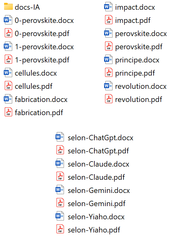Tous les documents indiqués sont téléchargeables à l’adresse DOCS (dossier perovskite).