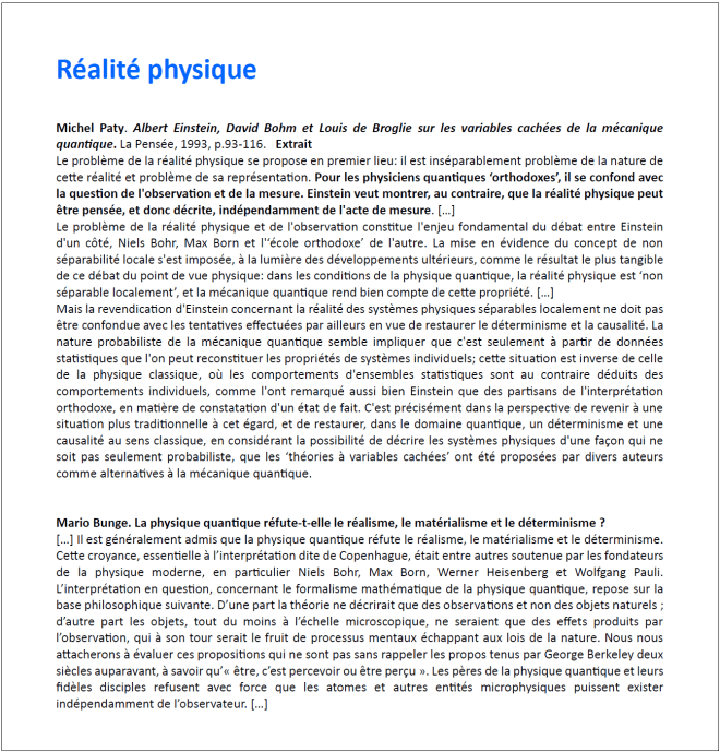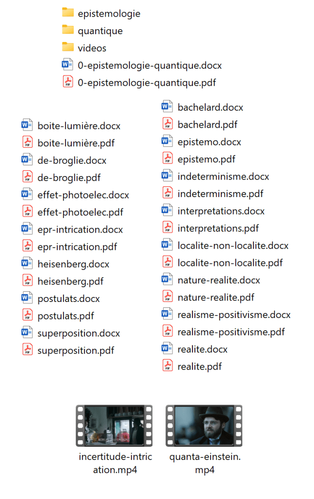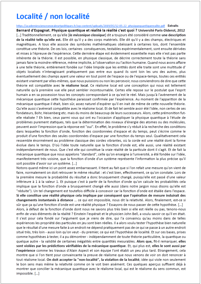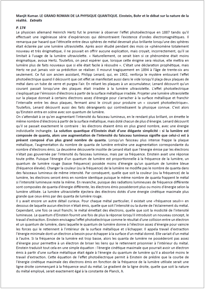 Tous les documents indiqués sont téléchargeables à l’adresse DOCS (dossier epistemologie quantique).