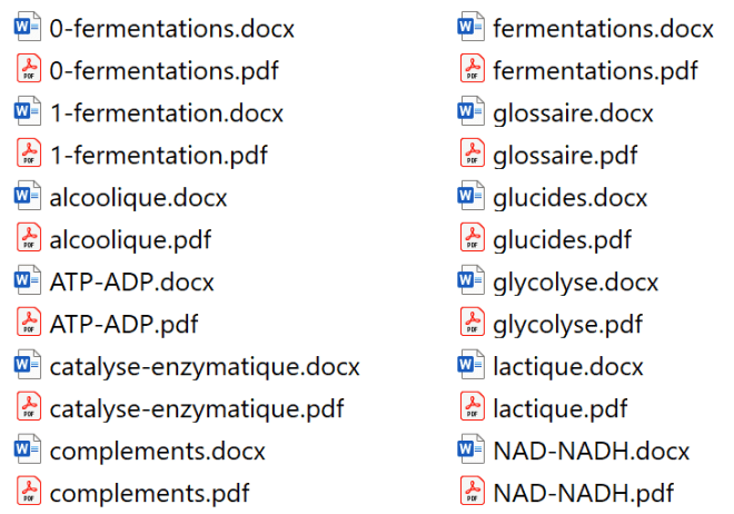 Tous les documents indiqués sont téléchargeables à l’adresse DOCS (dossier fermentations).